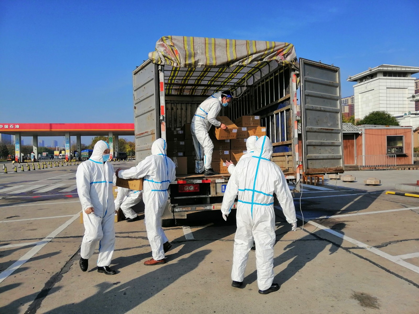 上午9时许,货车缓缓停靠在连霍高速郑州北服务区,数百箱防疫物资送达河南捐赠仪式地点,河南省慈善总会相关负责人及受助企业代表见证了这一爱心行动。